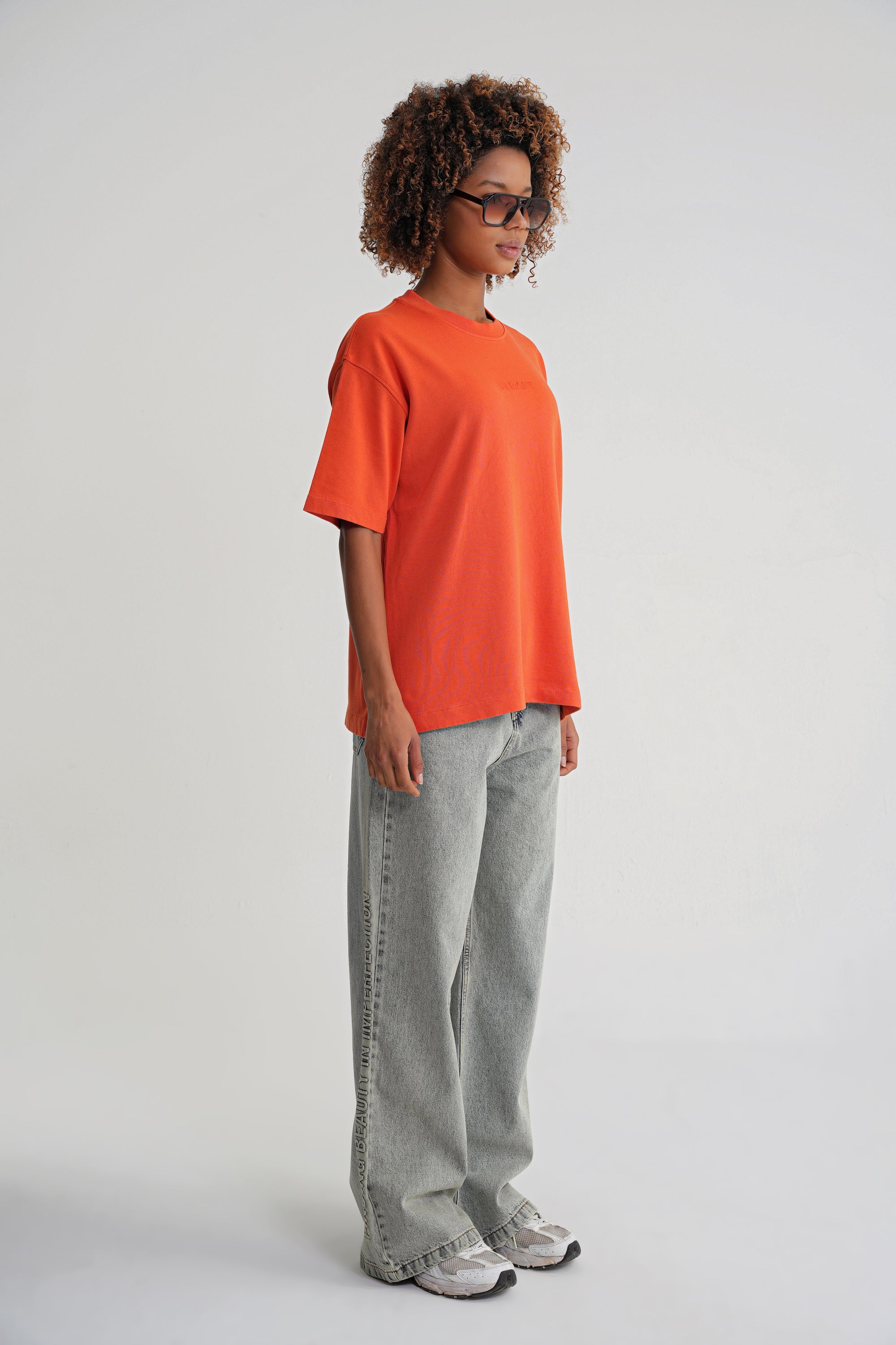 Dieses Modell ist ein leichtes, modern geschnittenes T-Shirt mit niedrig angesetzter Schulterlinie und einer Passform zwischen Oversized und Grooved Fit.