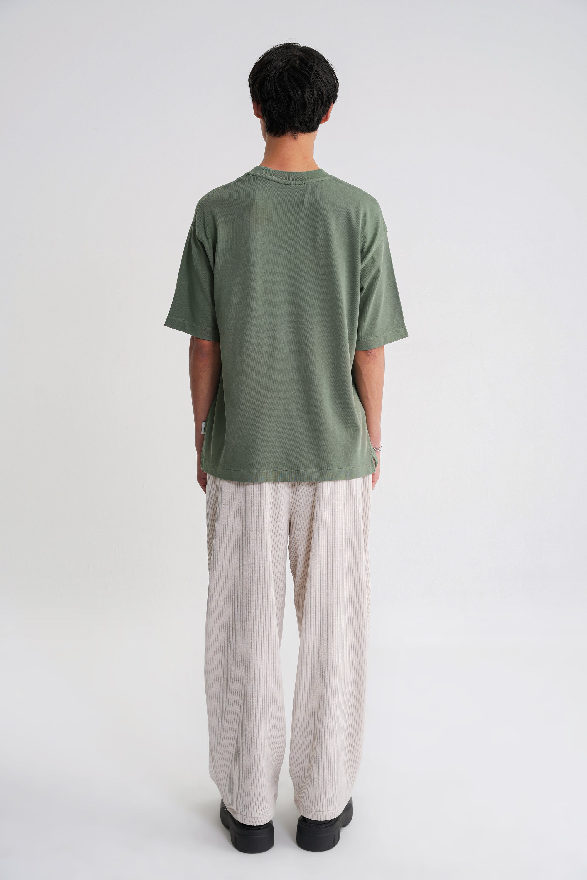 Dieses Modell ist ein leichtes, modern geschnittenes T-Shirt mit niedrig angesetzter Schulterlinie und einer Passform zwischen Oversized und Grooved Fit.