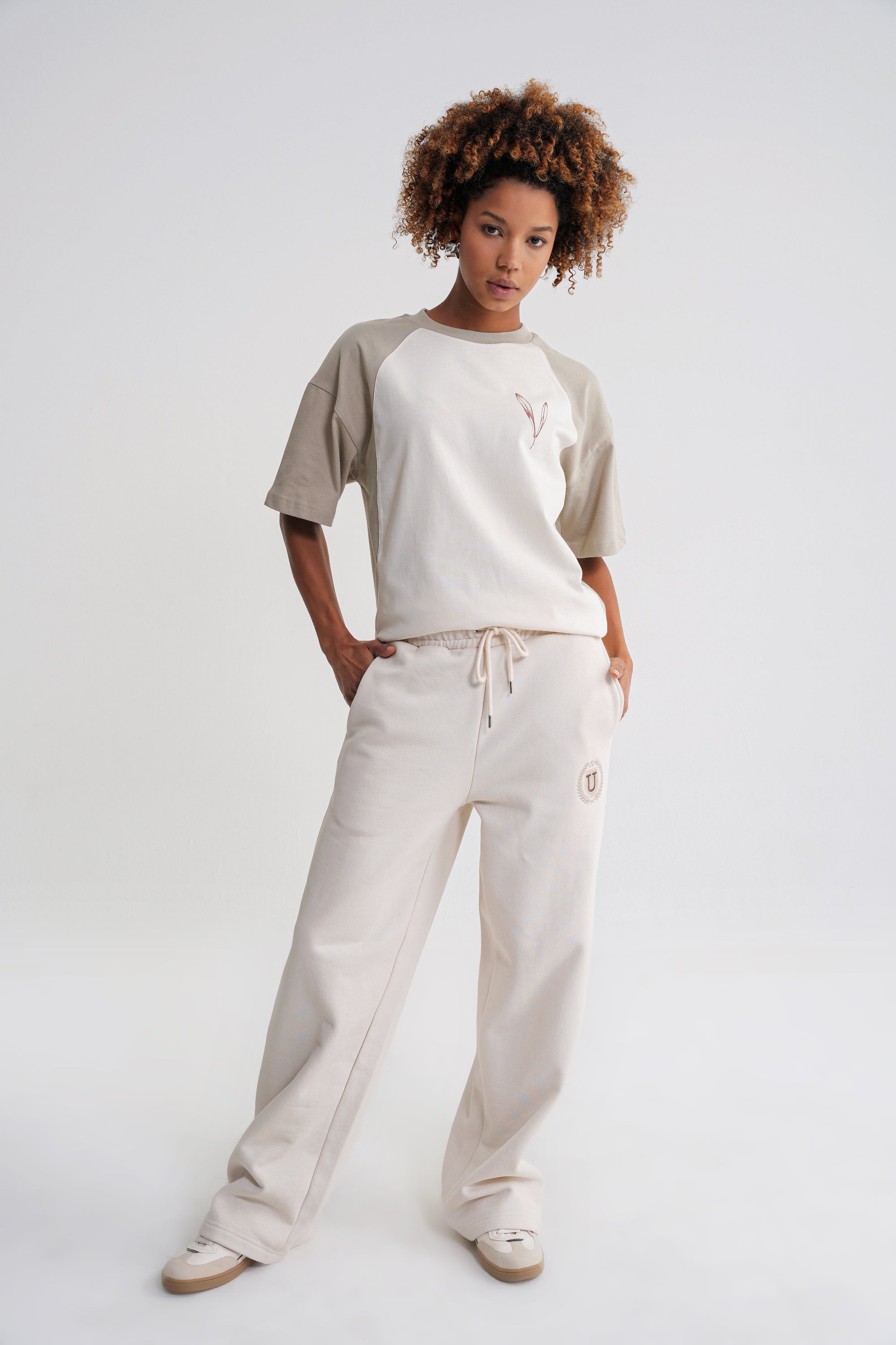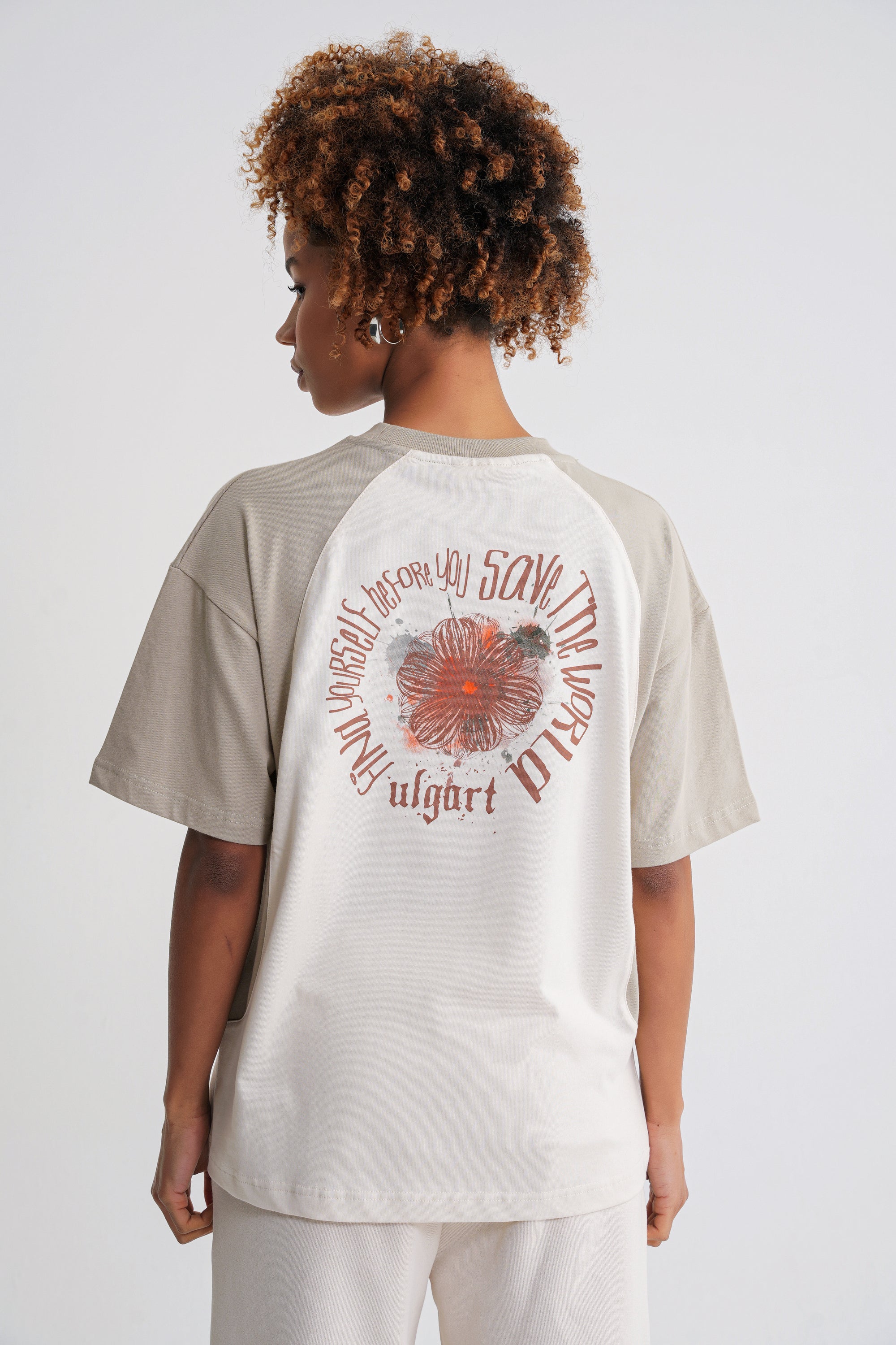 Reglan Flowers Oversize T-shirt Sprey Green -Antik White