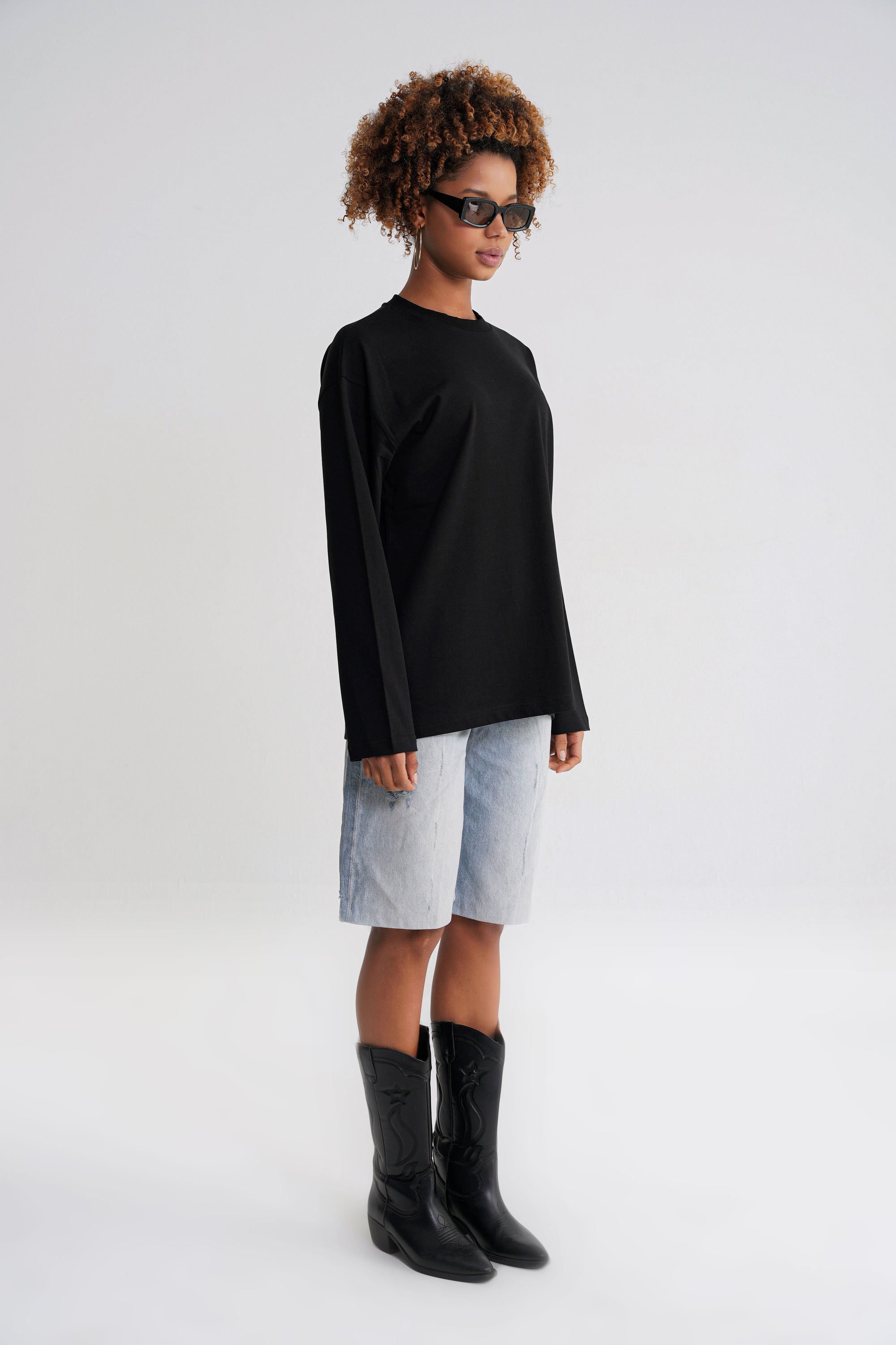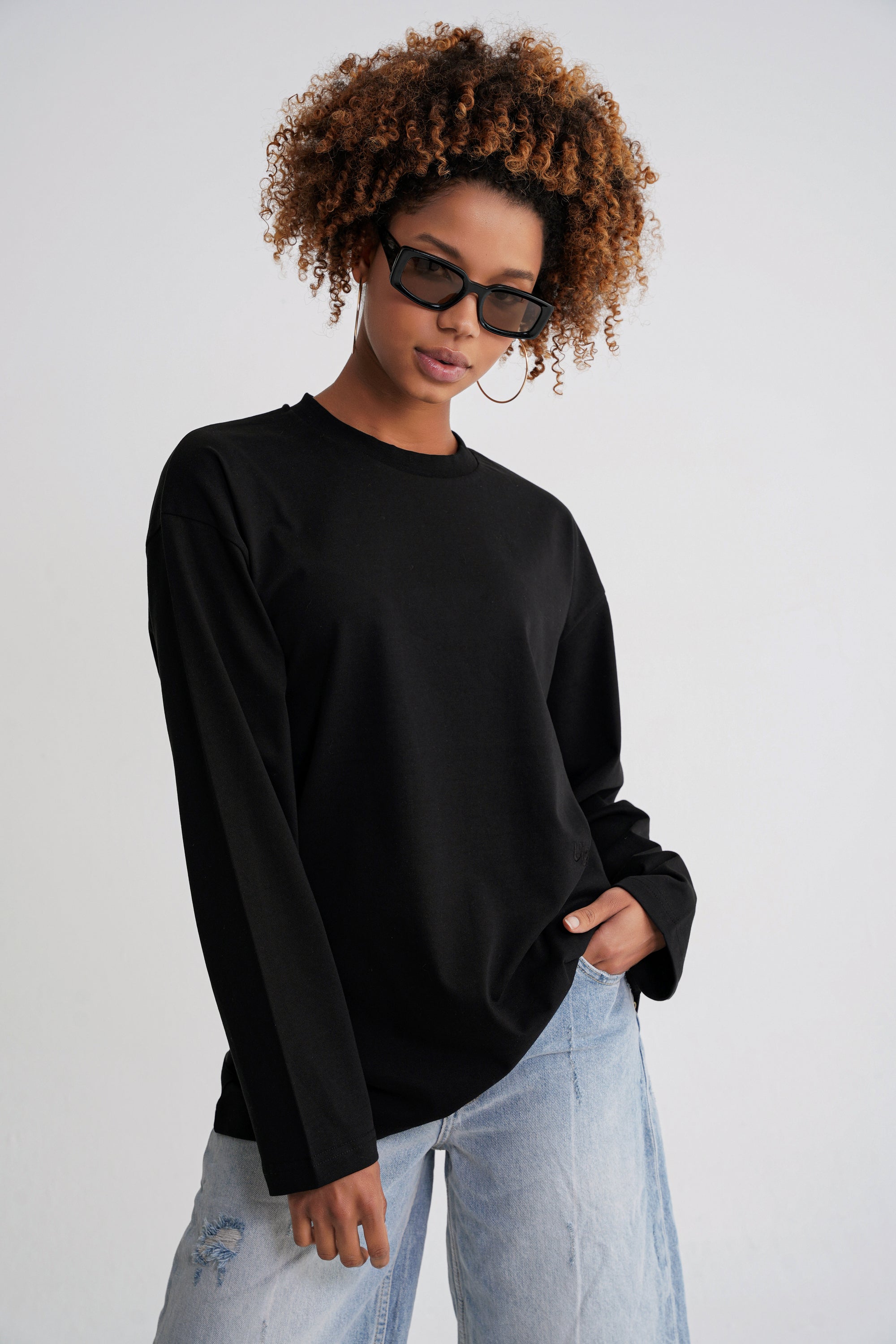 *Dieses Langarm-Oversize-T-Shirt besteht aus 100 % Baumwolle.